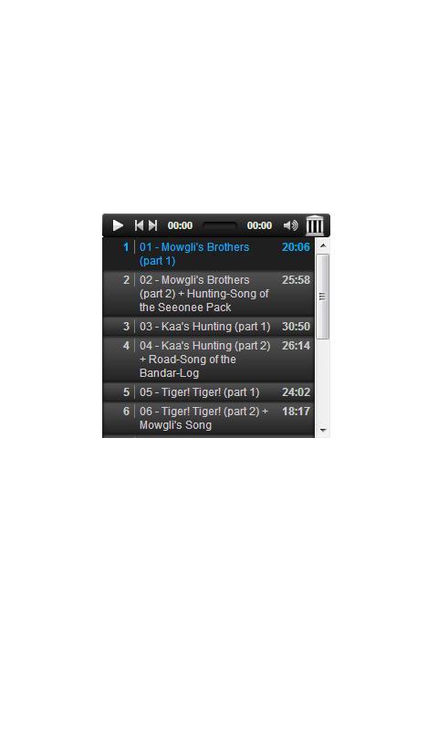 このアプリはブラウザを開き、ファイルをデバイスにダウンロードせずにジャングル ブックのオーディオブック録音を聴くことができる便利なブックマークです。音量の制御、一時停止、巻き戻し、早送りの機能が含まれます。